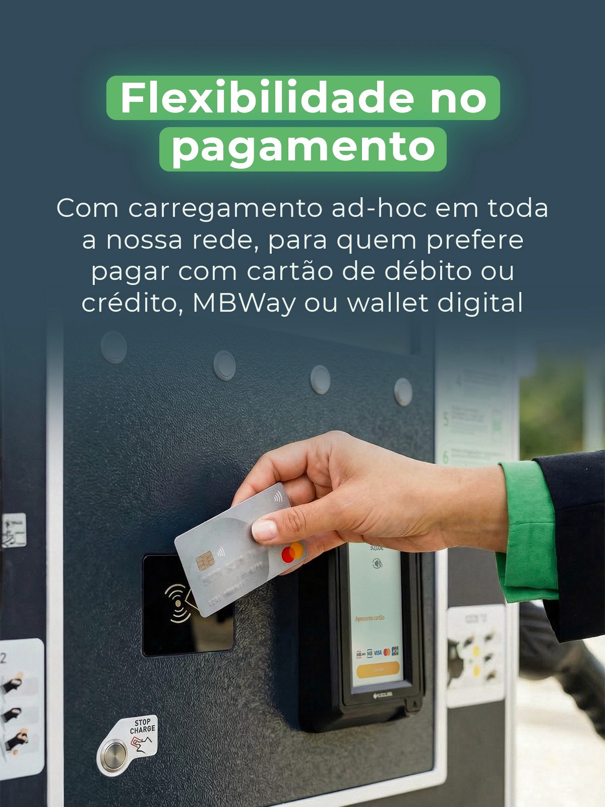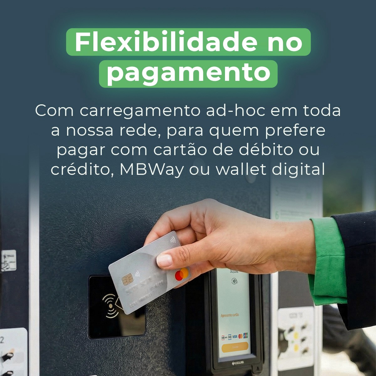 Em todos os postos Enable Mobility, para além de poder carregar com qualquer cartão ou app de carregamento, disponibilizamos ainda carregamentos ad-hoc com cartão de débito, cartão de crédito, MBWay e digital wallet. As nossas tarifas ad-hoc dependem da potência máxima do carregador.